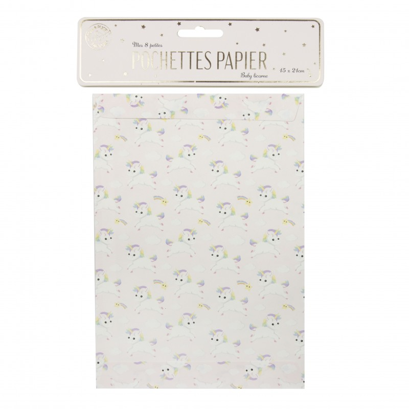 SAC A BONBON/GOODIES - Baby licorne x 8 (en papier 15cm x 21cm)