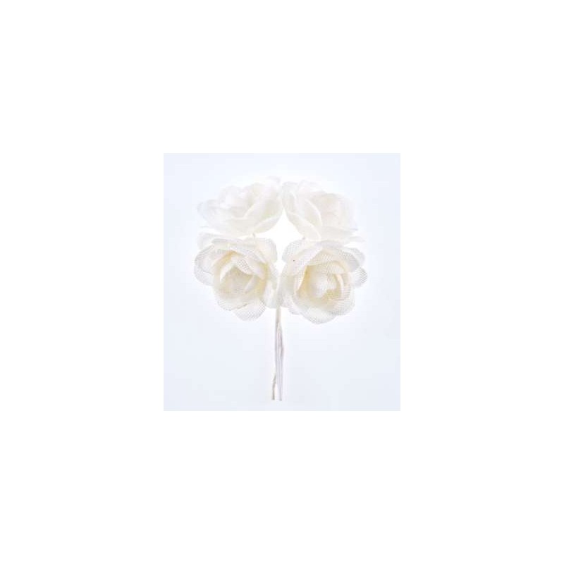 ROSE - En toile de jute blanche x 4 (3.5cm)