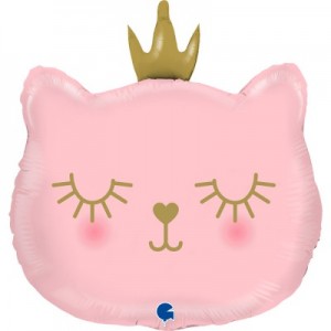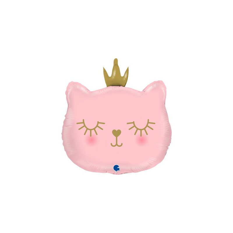 BALLON MYLARD - Chat rose avec couronne dorée (66cm) - H=2€50