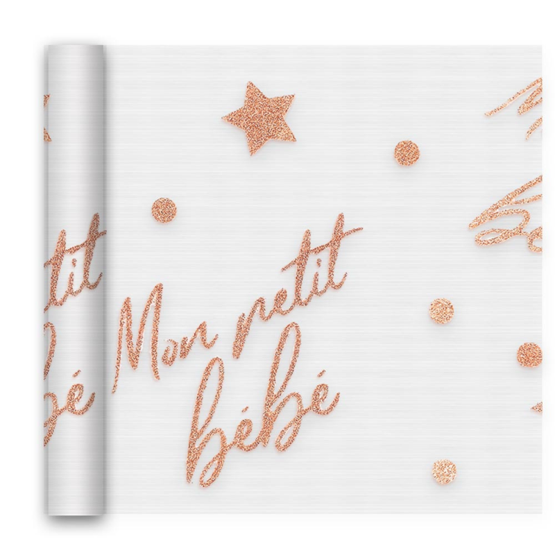 CHEMIN DE TABLE - Baby shower/mon petit bébé blanc avec inscription rose gold