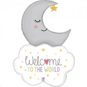 BALLON MYLARD - Lune et nuage "Welcome to the world" (106cm) - H 3€50