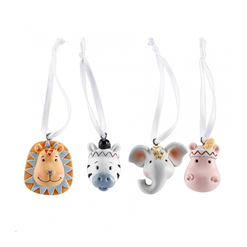 SUJET BOITAGE/DECOR DE SERVIETTE - Animaux de la jungle/safari (en résine à susp