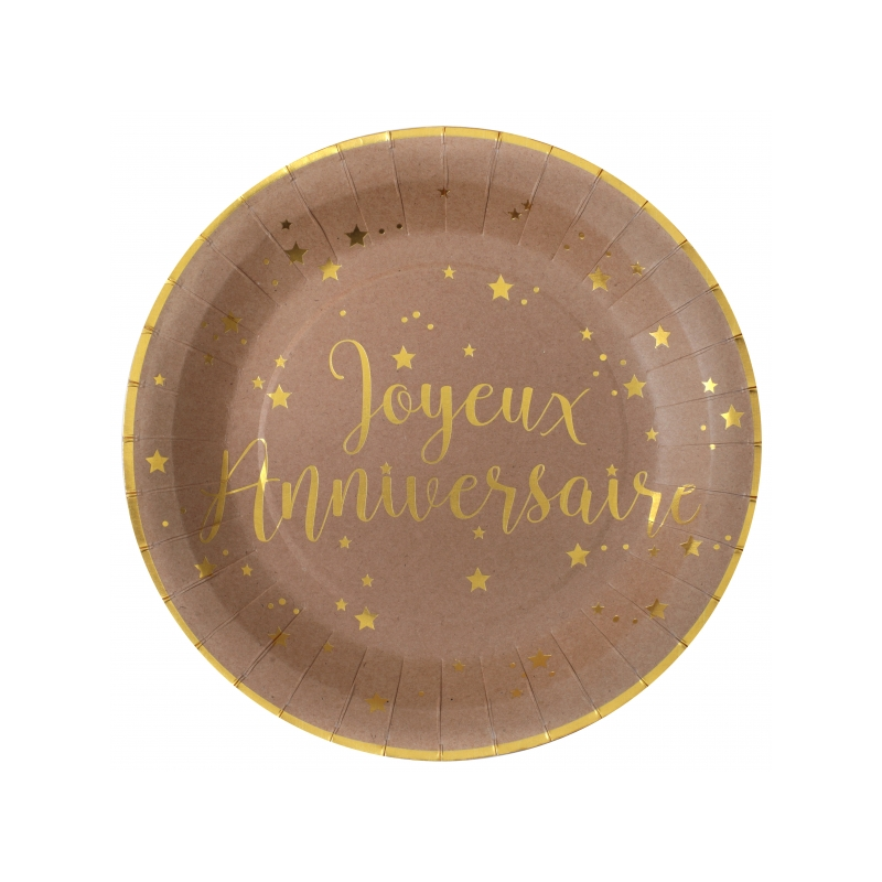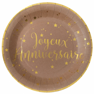 ASSIETTE - Joyeux anniversaire bleu marine avec inscription or/doré x 10 (en carton 23cm)