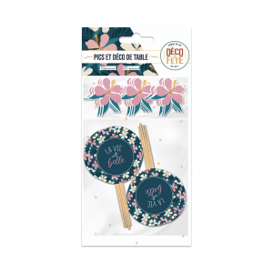 PIC A COCKTAIL/VERRINE - La vie est belle x 12 et confettis de table x 20 (en carton 4cm)