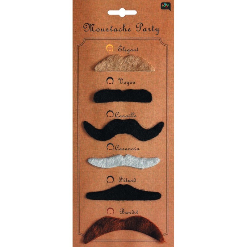 MOUSTACHE - Assortiment x 6 (adhésive/autocollante)