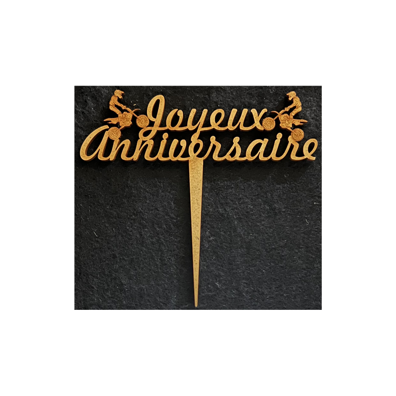 TOPPER - Joyeux anniversaire avec ses motos cross (en bois 12cm x 12cm)