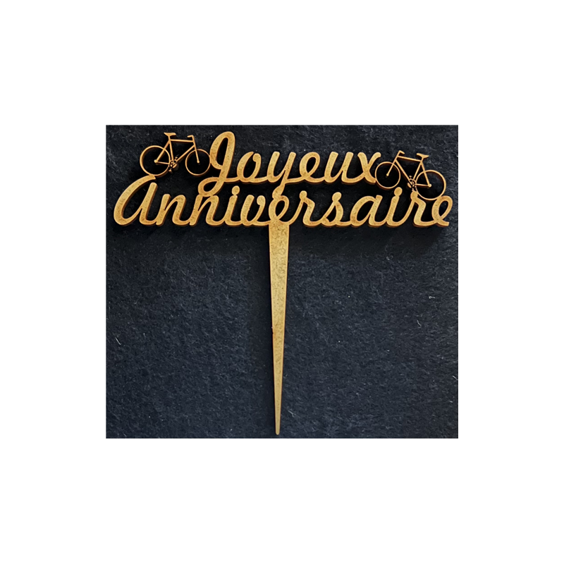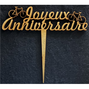 TOPPER - Joyeux anniversaire avec ses vélos (en bois 12cm x 12cm)