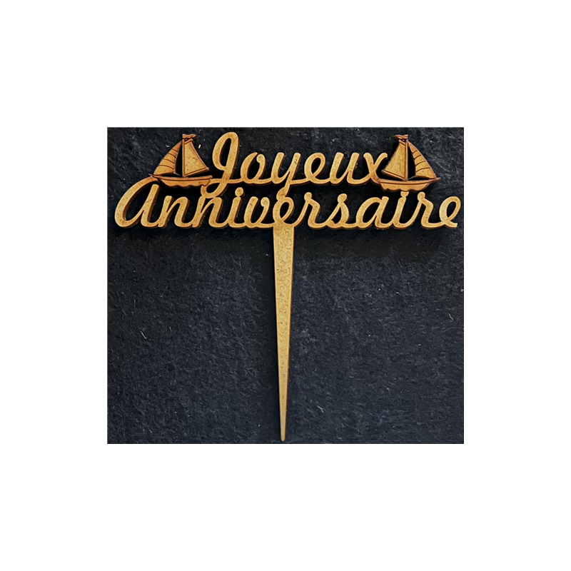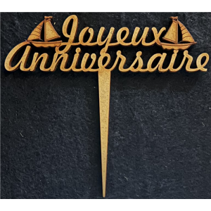 TOPPER - Joyeux anniversaire avec ses bateaux (en bois 12cm x 12cm)