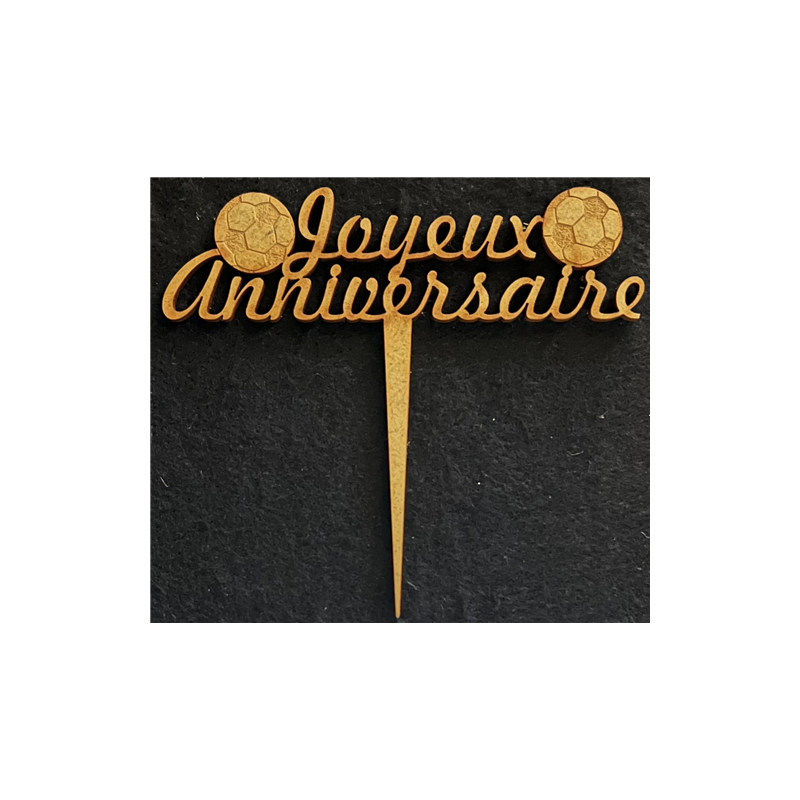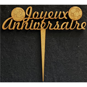 TOPPER - Joyeux anniversaire avec ses ballons de foot (en bois 12cm x 12cm)