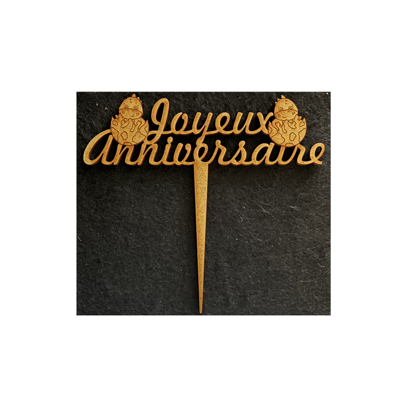 TOPPER - Joyeux anniversaire avec ses petits dinosaures (en bois 12cm x 12cm)