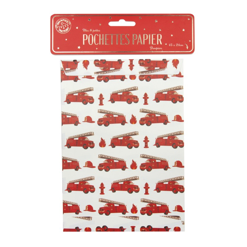 SAC A BONBON/A GOODIES - Pompier x 8 (en papier 13cm x 17cm)