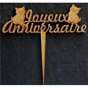 TOPPER - Joyeux anniversaire avec ses petits chats (en bois 12cm x 12cm)