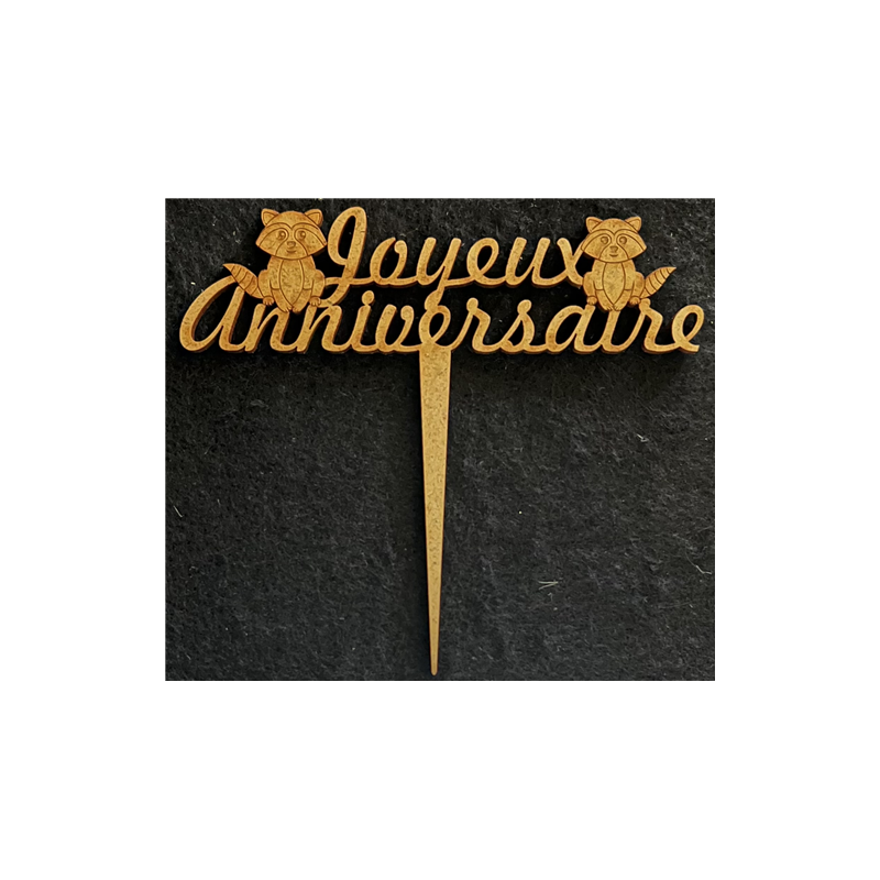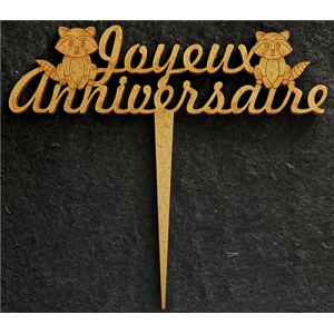 TOPPER - Joyeux anniversaire avec ses ratons laveurs (en bois 12cm x 12cm)