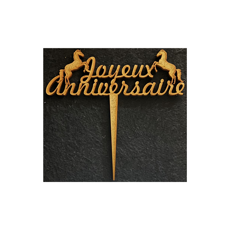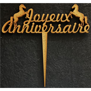 TOPPER - Joyeux anniversaire avec ses petits chevaux (en bois 12cm x 12cm)