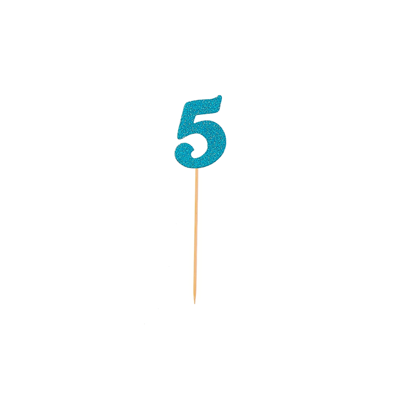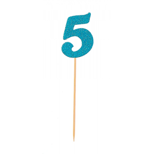 DECOR DE GATEAU/MARQUE TABLE - Chiffre 5 bleu turquoise x 6 (en carton 9cm)
