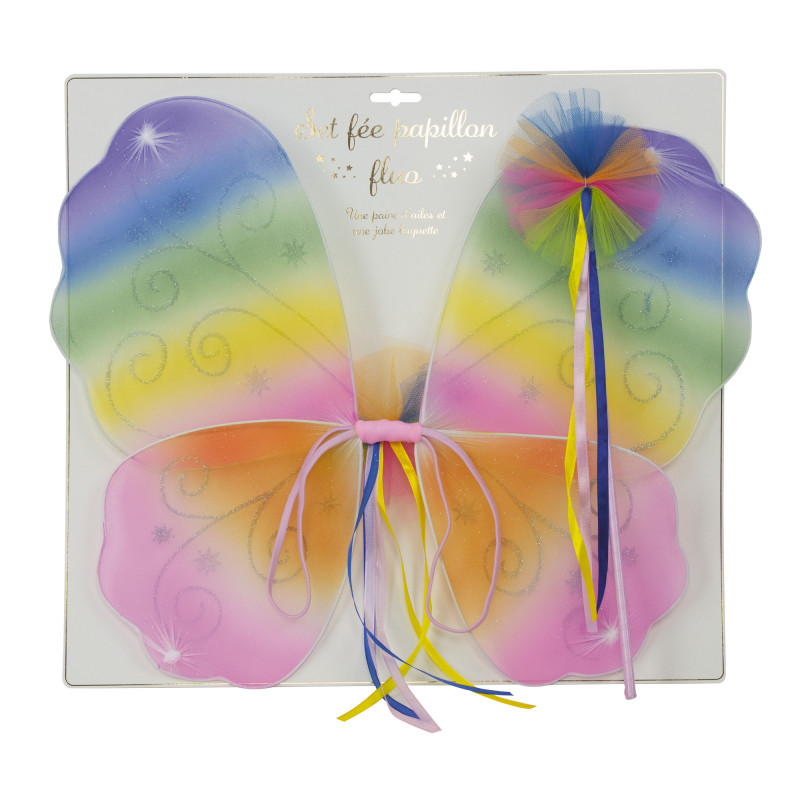 SET FEE PAPILLON - Baguette magique et ailes arc en ciel (ajustable)