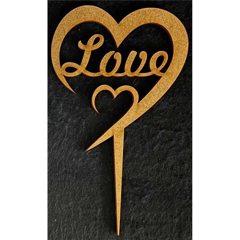 TOPPER - Love avec ses doubles cœurs (en bois 9,5cm x 15.5cm)
