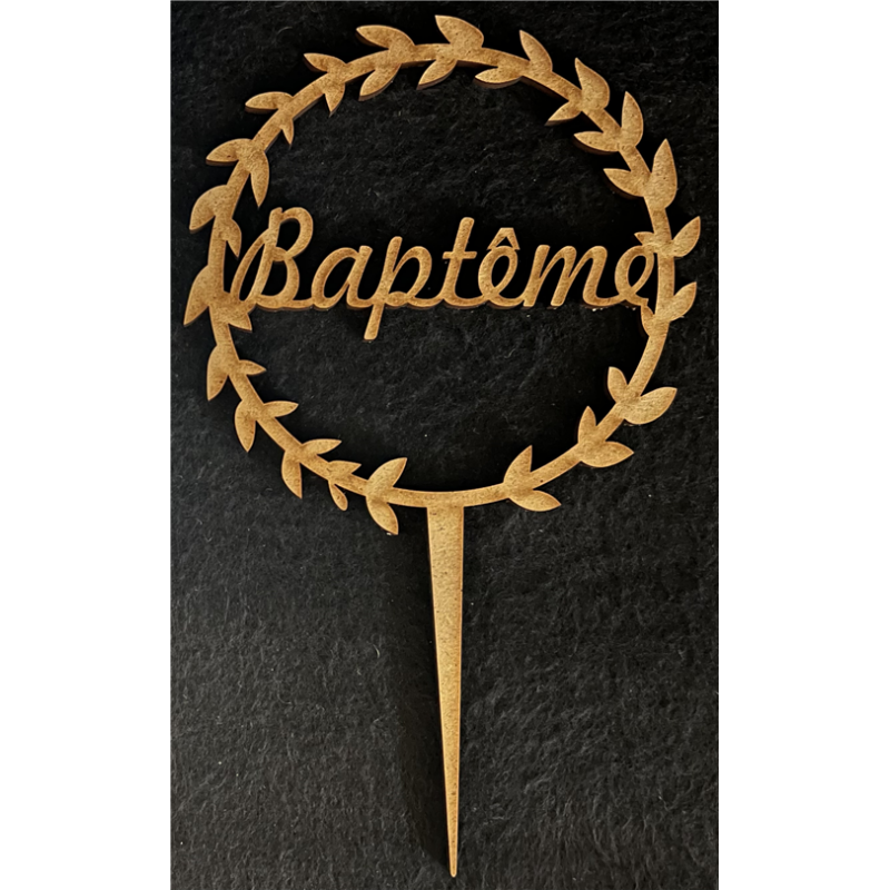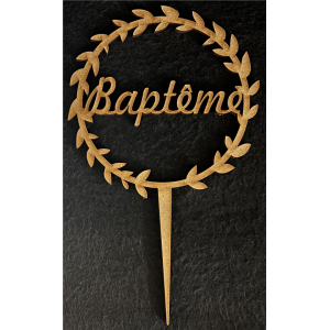 TOPPER - Couronne baptême (en bois 12cm x 20.5cm)