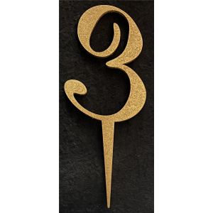TOPPER - Chiffre 3 de couleur or/doré (en bois 6,5cm x 17cm)