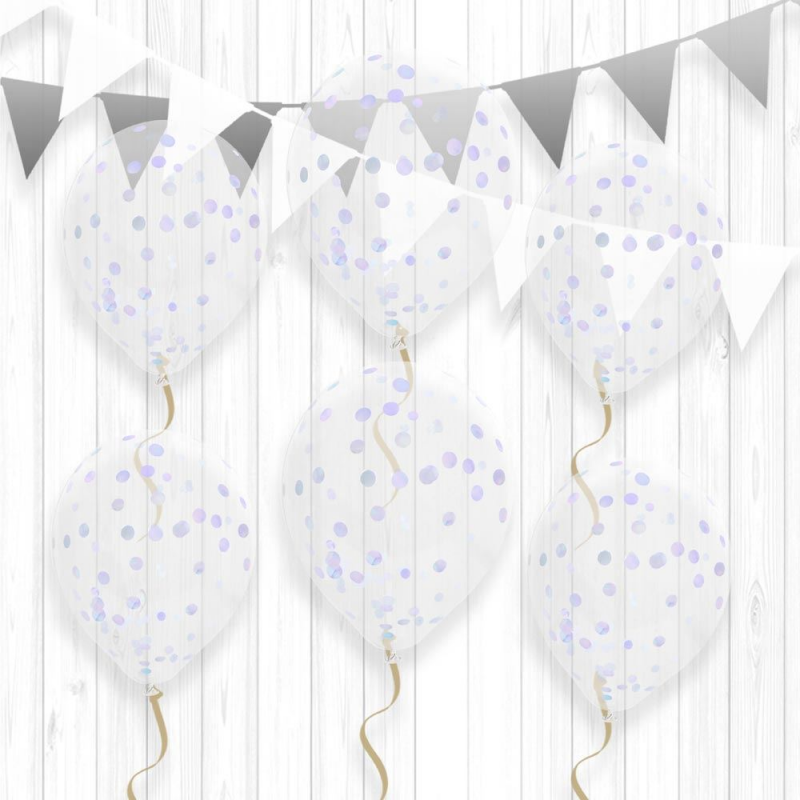 BALLON - Transparent avec confettis irisé x 6 (en latex 30cm)