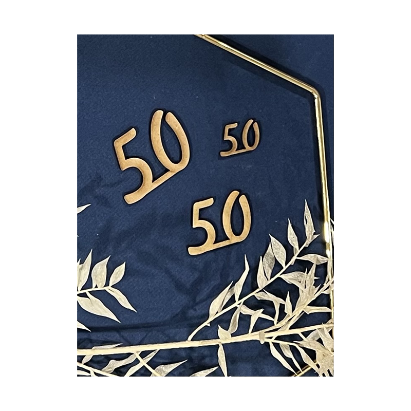 CONFETTIS DE TABLE - Chiffre 50 x 20 (en bois 2cm x 10 / 4cm x 5 / 5cm x 5)