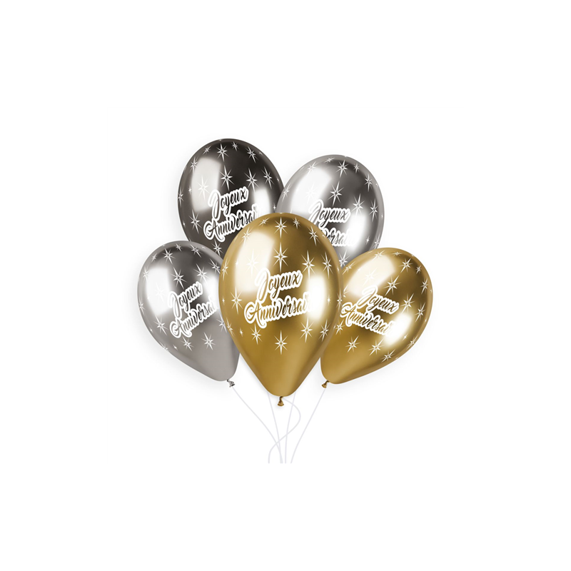 La gamme Chrome offre une brillance incomparable qui capte la lumière pour un effet visuel spectaculaire. Ce mélange de noir, d'or et d'argent est le choix idéal pour un anniversaire chic et intemporel.