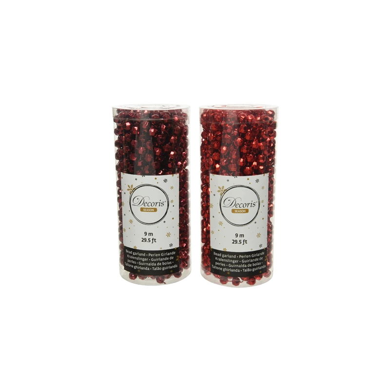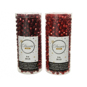 GUIRLANDE POUR SAPIN/TABLE - Perle/boule à facette rouge/bordeaux brillant (en plastique 0.8cm x 9m)