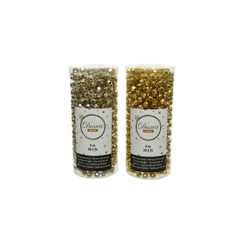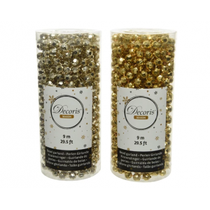 GUIRLANDE POUR SAPIN/TABLE - Perle/boule à facette or/doré clair/brillant (en plastique 0.8cm x 9m)