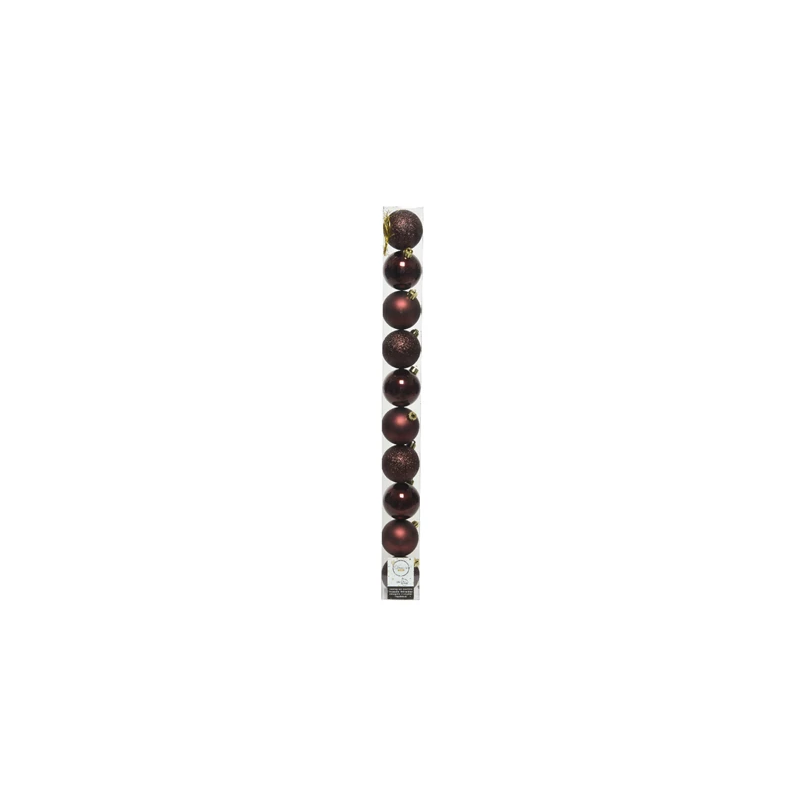 DECOR SAPIN - Boule de Noël acajou brillant/mat/pailleté x 10 (incassable 6cm)