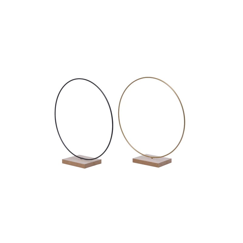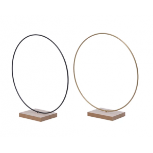 CENTRE DE TABLE - Cercle métal sur support bois (30cm)