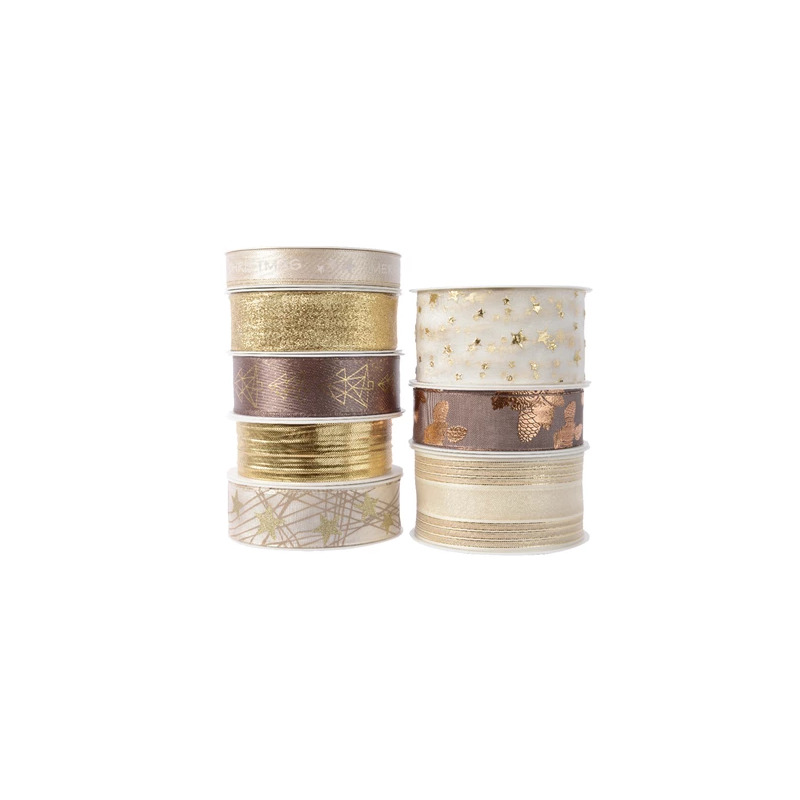 RUBAN - Assortiment brun/ivoire/or/doré (coloris au choix de 2m à 4m)