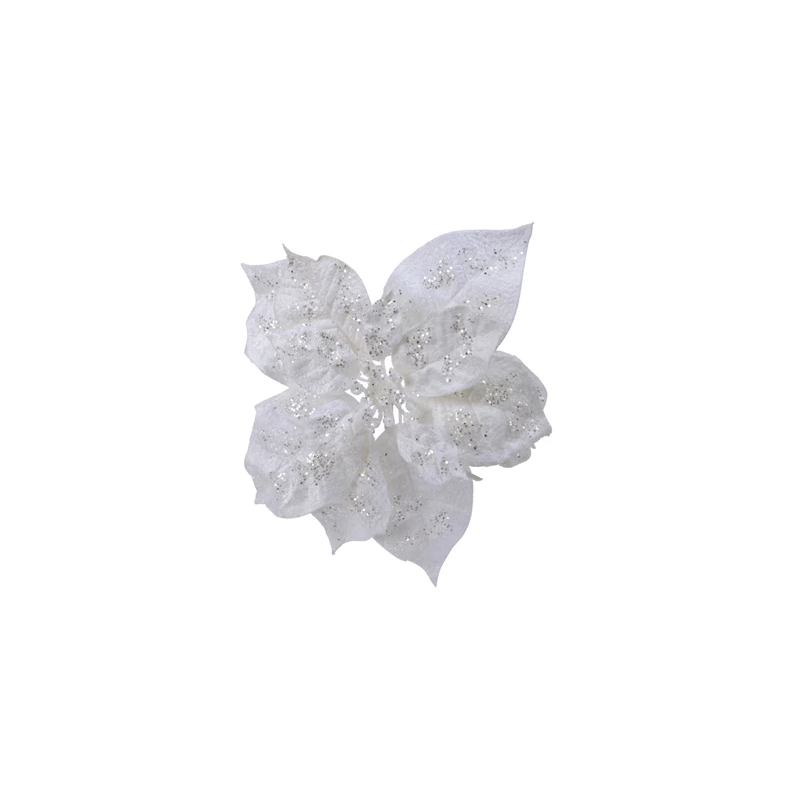 DECOR DE NOEL - Poinsettia blanc (sur pince 16cm)