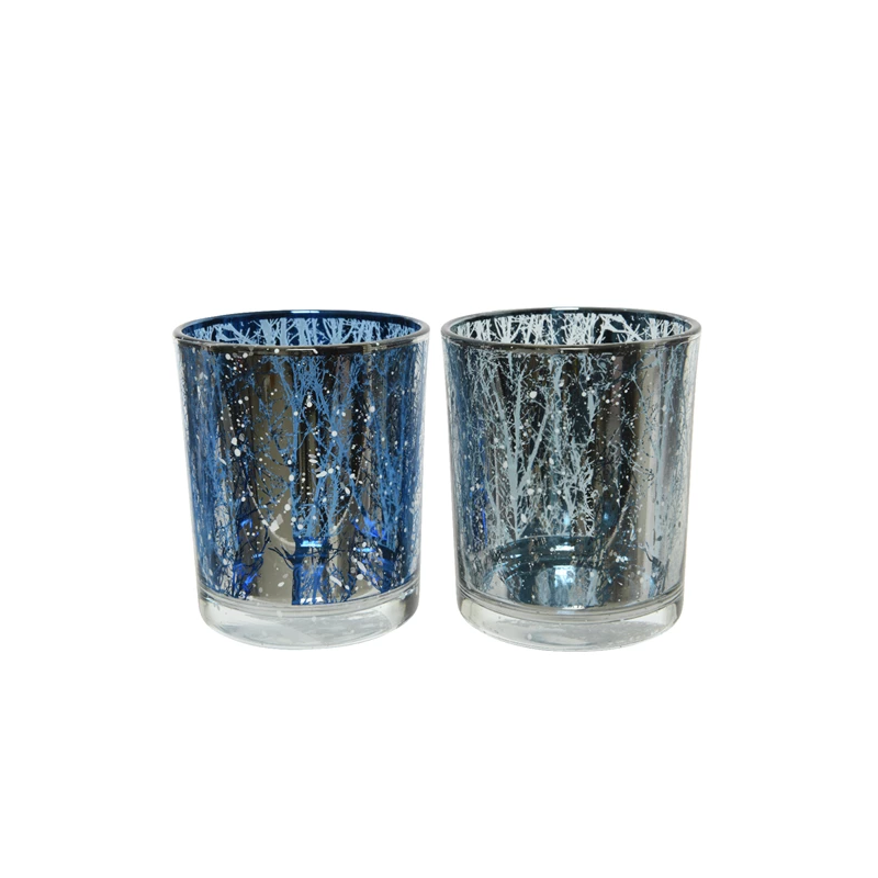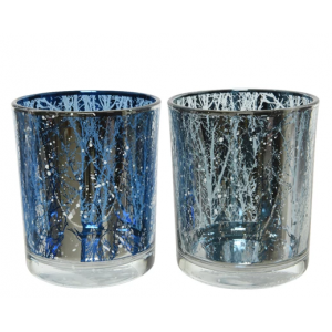 BOUGEOIR/PHOTOPHORE - Branchage bleu foncé/clair (au choix en verre 8.2cm)