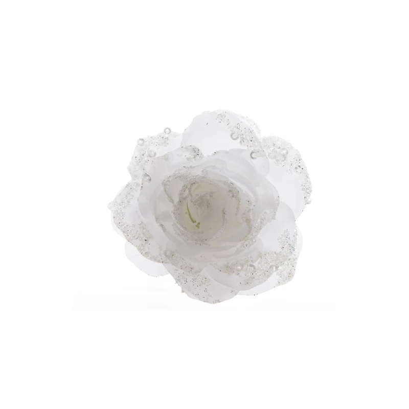 DECOR DE NOEL - Rose de noël blanche (sur pince 8.5cm)