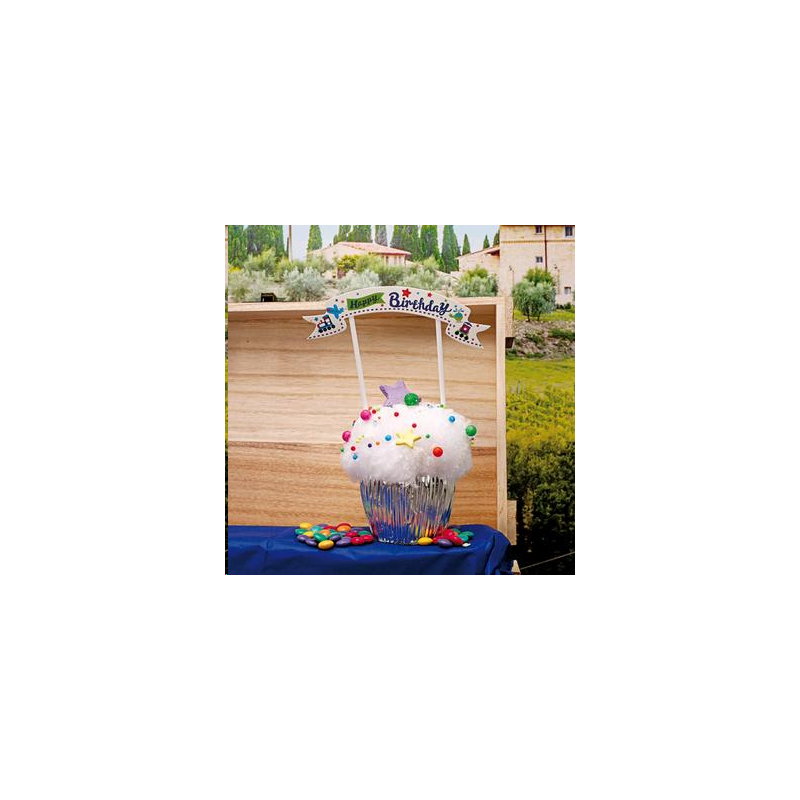 DECOR/TOPPER GATEAU - Happy Birthday sur pic (en papier)