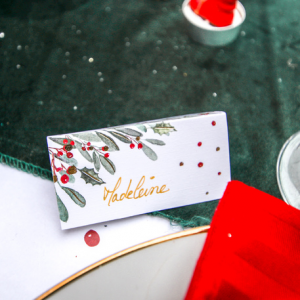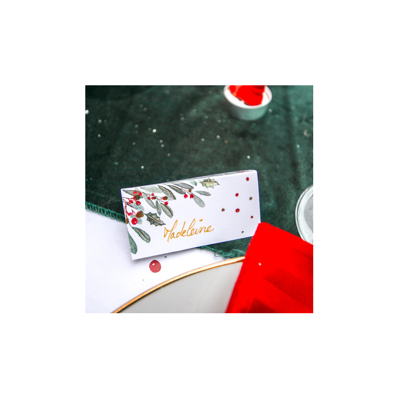 CHEVALET/MARQUE PLACE - Blanc avec impression noël tradi chic (4cm x 8cm)