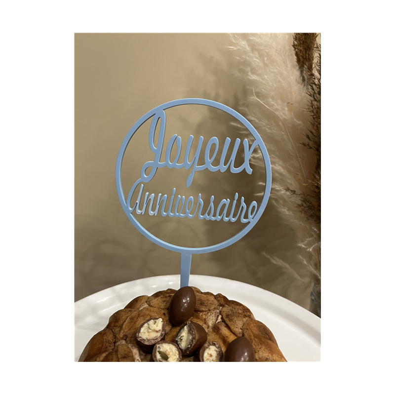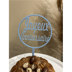 TOPPER - Joyeux anniversaire bleu pastel (en troglass 12cm x 22.5cm)