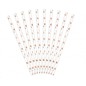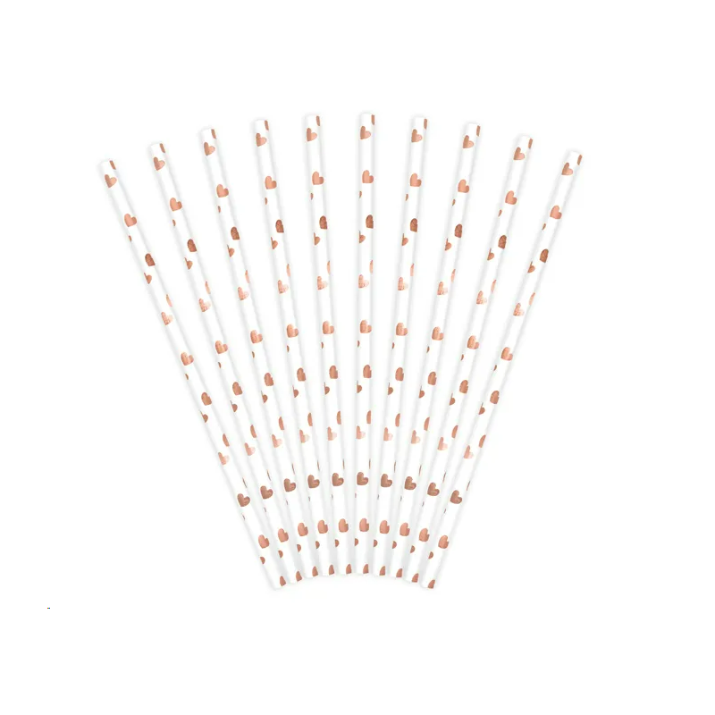 PAILLE - Rose pastel/clair avec rayure or/dorée/gold x 10 (en carton 19,50cm)