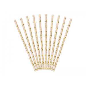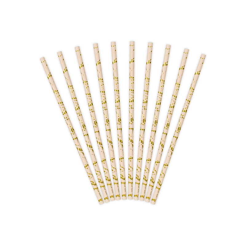 PAILLE - Rose pastel/clair avec rayure or/dorée/gold x 10 (en carton 19,50cm)