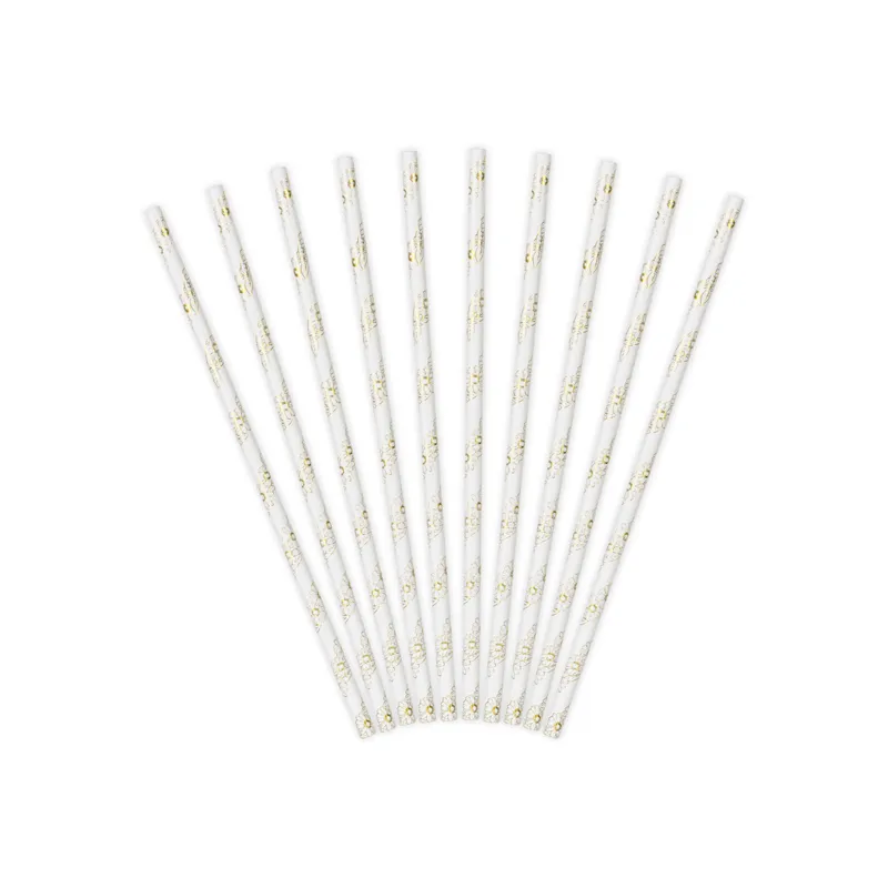 PAILLE - Rose pastel/clair avec rayure or/dorée/gold x 10 (en carton 19,50cm)