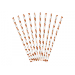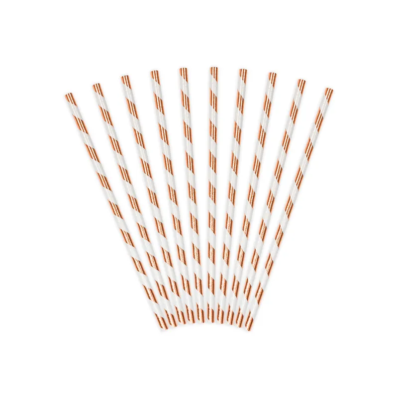 PAILLE - Rose pastel/clair avec rayure or/dorée/gold x 10 (en carton 19,50cm)