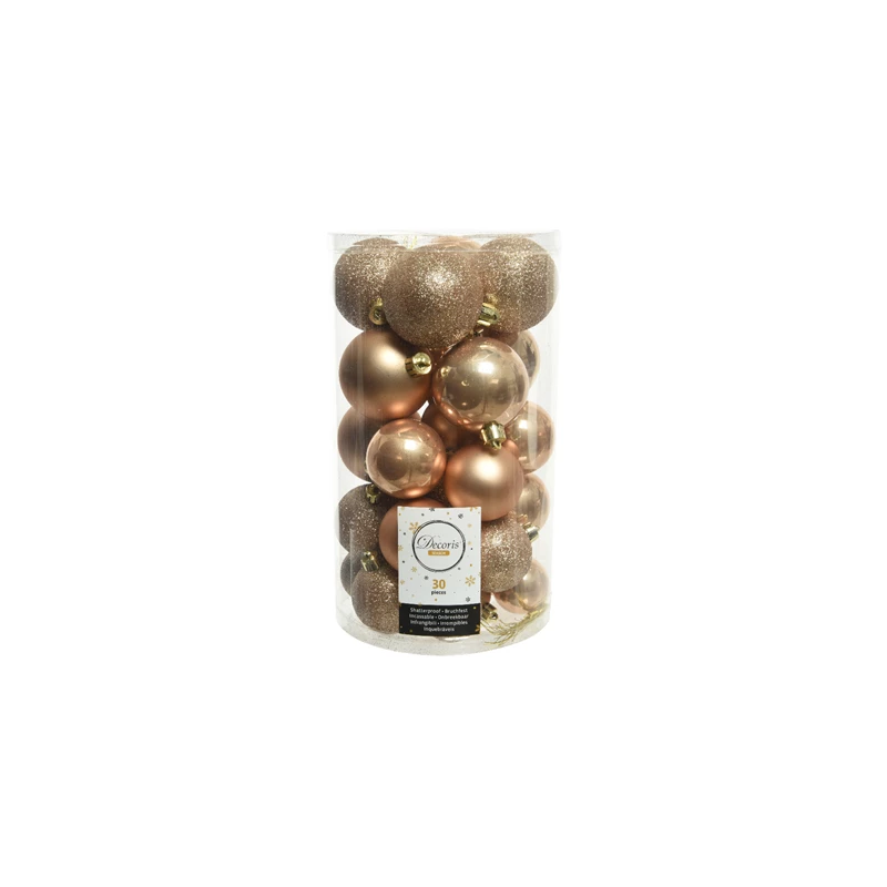 DECOR SAPIN - Boule caramel brillant/mat/pailleté x 30 (incassable tailles assorties)
