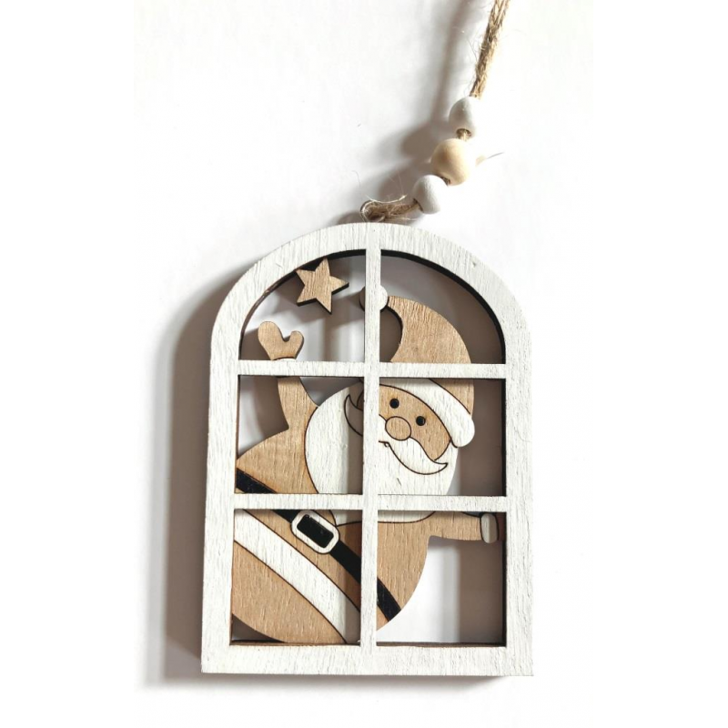 DECOR DE NOEL - Père Noël derrière sa fenêtre (en bois 11cm)