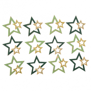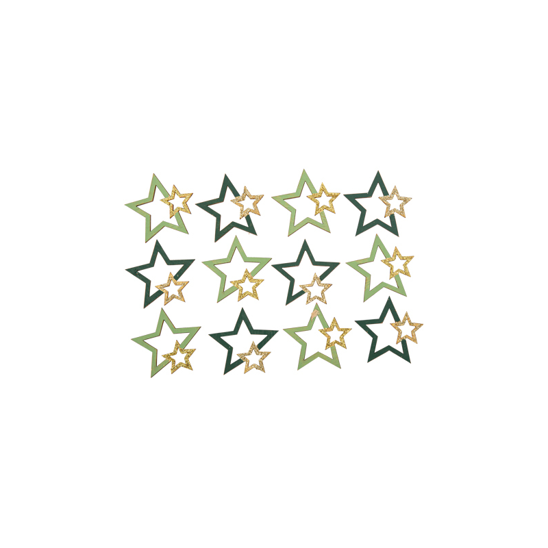 CONFETTIS DE TABLE - Etoile vert sauge et or/doré x 12 (en bois 4cm)