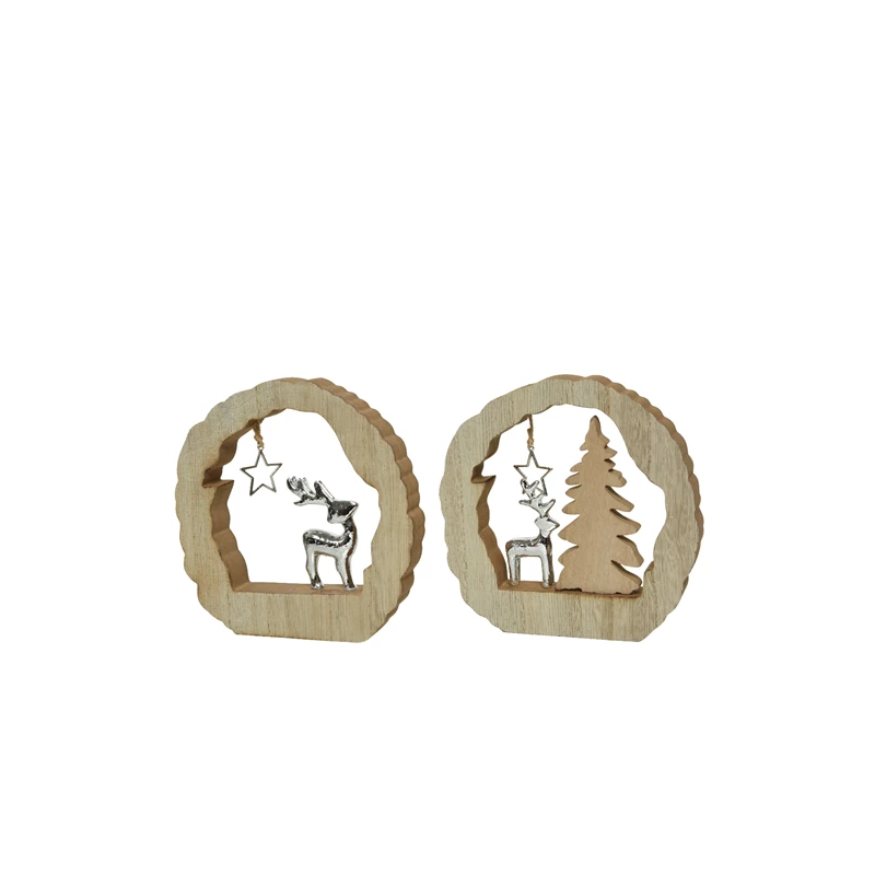 DECOR DE NOEL - Centre de table cerf et sapin (en bois 14.5cm)