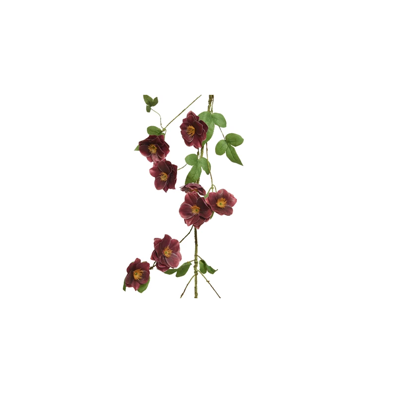 GUIRLANDE - Fleur de camélia bordeaux et feuillage (artificiel 1m30)
