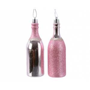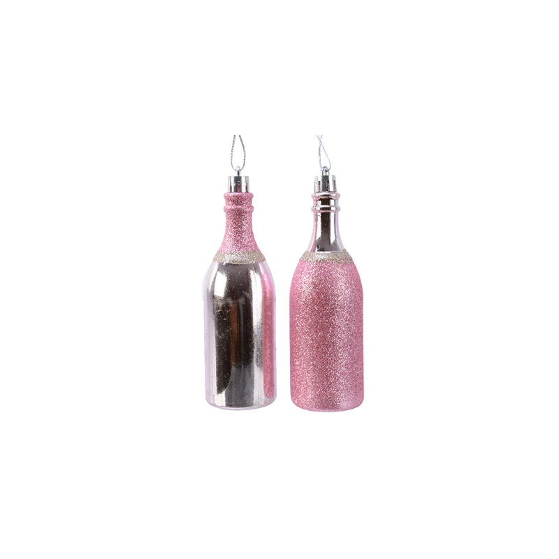 DECOR SAPIN - Boule de Noël bouteille de champagne argent/rose pailletée (en plastique 4cm)