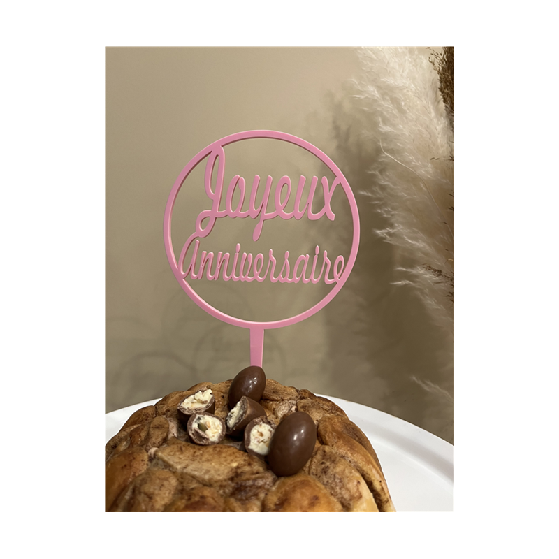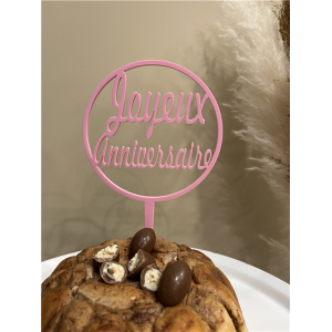 TOPPER - Joyeux anniversaire rose (en troglass 12cm x 22.5cm)