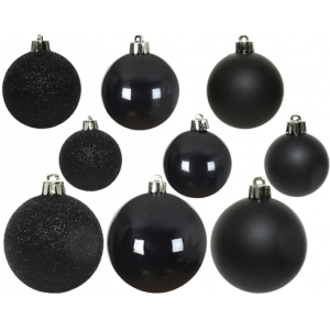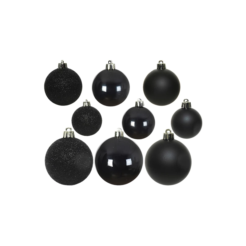 DECOR SAPIN - Boule noire brillant/mat/pailleté x 30 (incassable 6/8cm)