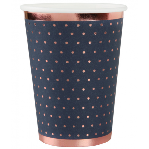 GOBELET/VERRE - Bleu marine à pois rose gold x 10 (en carton 27cl)